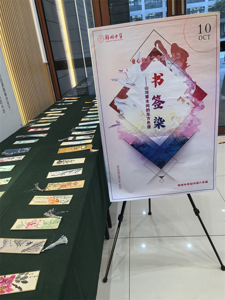 一枚枚手绘书签勾勒壮美山河,一段段原创视频诉说家乡变迁,一张张灿烂笑脸与国旗同框……为厚植学生爱国情怀、传承红色基因、增强文化自信,10月1日到14日,郑州中学八年级精心策划并开展了形式多样、内容丰富的“童心向党 礼赞祖国”主题系列活动。活动涵盖主题班会、手绘书签展览、视频拍摄、与国旗合影等多个板块,引导学生在沉浸式体验中厚植家国情怀,在实践参与中凝聚奋进力量,为学校德育工作注入了鲜活动能。