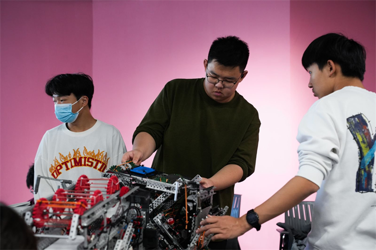 奖杯捧在手中的时刻,重量格外真切。若问这份重量从何而来,实验室深夜常亮的灯或许知道答案。“学生对我们这门课程很有热情,作为老师肯定是开心的,要给予大力支持。”陈瑞玲和张小芬老师常把这句话挂在嘴边。正是基于学校专门开设的VEX机器人校本活动课程,师生才有了这片共同的耕耘之地。在无数个夜晚的VEX机器人实验室里,两位老师的身影总是最后离开。调试陷入僵局时的一声关心,遇到瓶颈时的一句提醒,情绪焦灼时的一次谈心,这些细微之处的支撑,让学生们在攻坚的路上从未感到孤独。